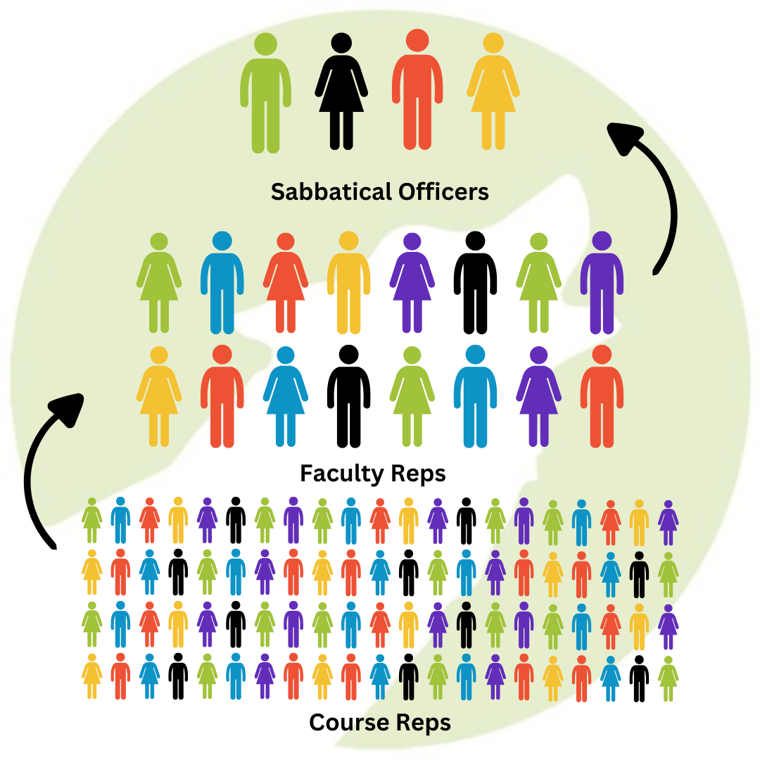Sabbatical Officers are full-time elected student leaders. They work with Faculty Reps to take your voice to the very top of the University and fight for the changes students want to see.